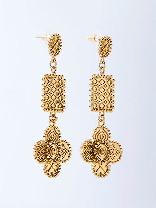 Westside Accessories Gold Textured Disc Dangler Earrings