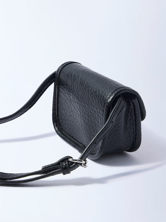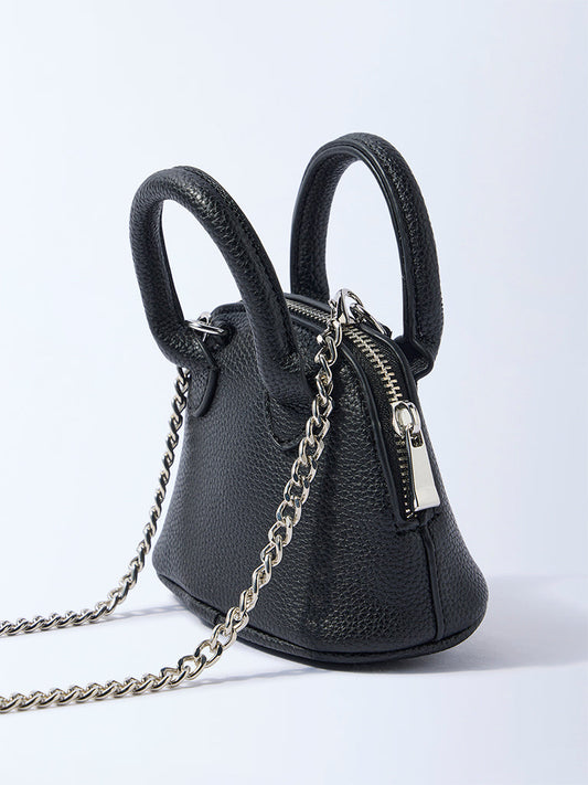 Westside Black Textured Chain-Detailed Mini Sling Bag