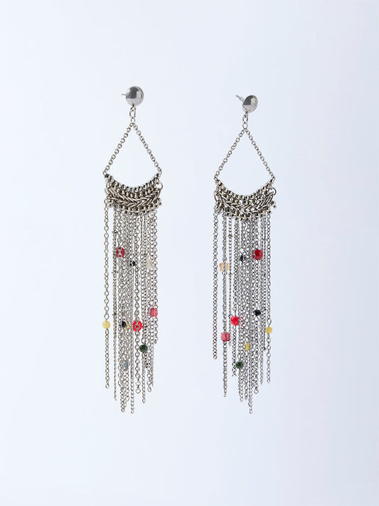 Westside Accessories Silver Beaded Chain Statement Earrings