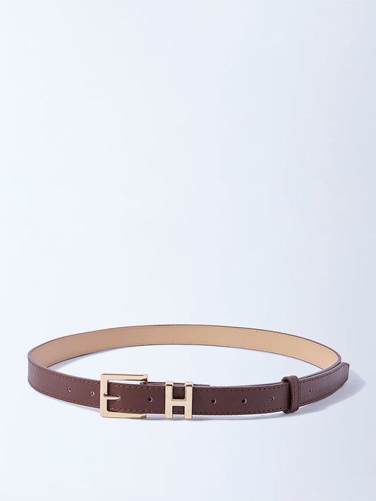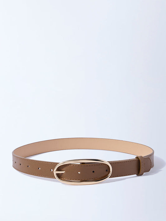 Westside Accessories Brown Oval-Twisted Buckle Belt