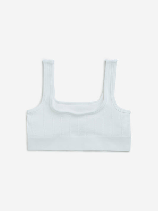 Superstar White Ribbed Seam-Free Cotton-Blend Padded Bra