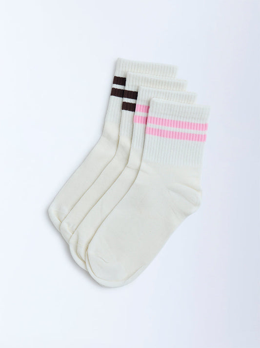 Superstar White Striped Cotton-Blend Socks - Pack of 2