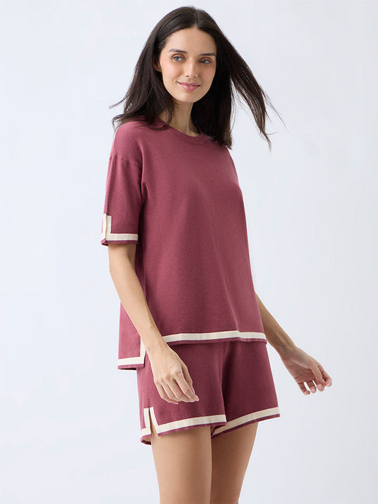 Gia Maroon Ruffle-Detailed Top with Camisole