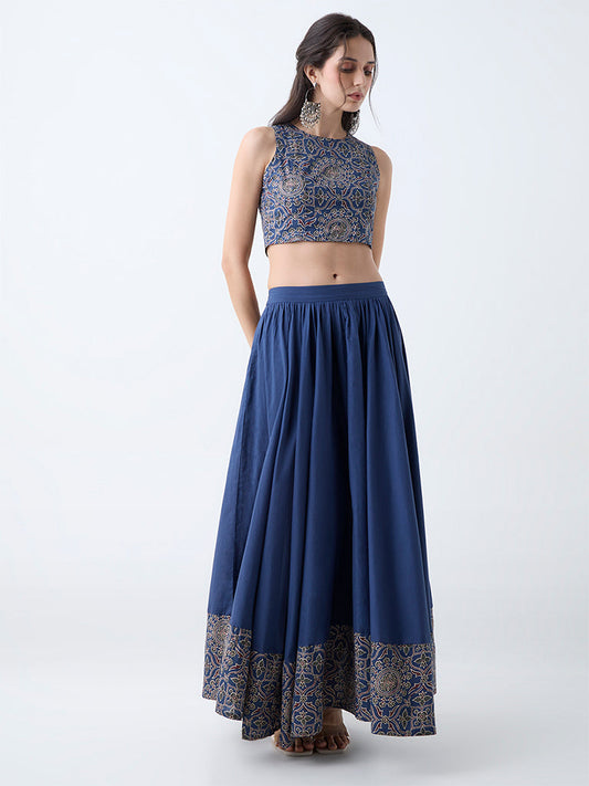 Utsa Off-White Floral Embroidered Cotton-Blend Ethnic Top