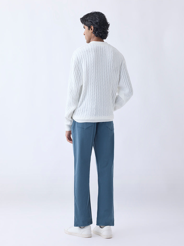 Ascot brings these teal jeans, constructed from sturdy cotton-blend fabric in a relaxed silhouette. Designed with a mid-rise waist, they feature a buttoned closure, zipper fly and belt loops. Finished with multiple pockets, this pair is a refined essential for laid-back yet polished looks.
