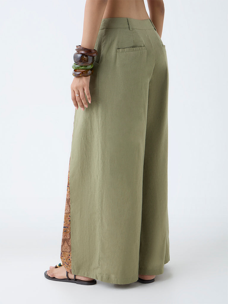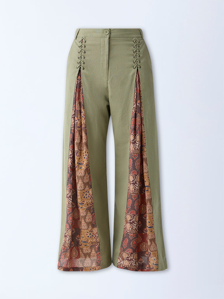 Bombay Paisley Olive Printed Cotton-Blend Pants