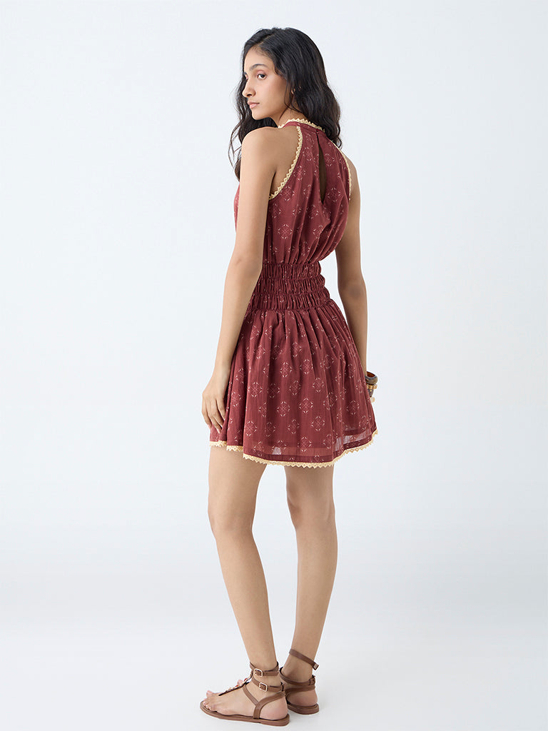 Bombay Paisley Red Printed Halter-Neck Cotton A-Line Dress