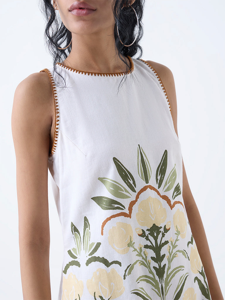 Bombay Paisley White Foliage Cotton-Blend Shift Dress