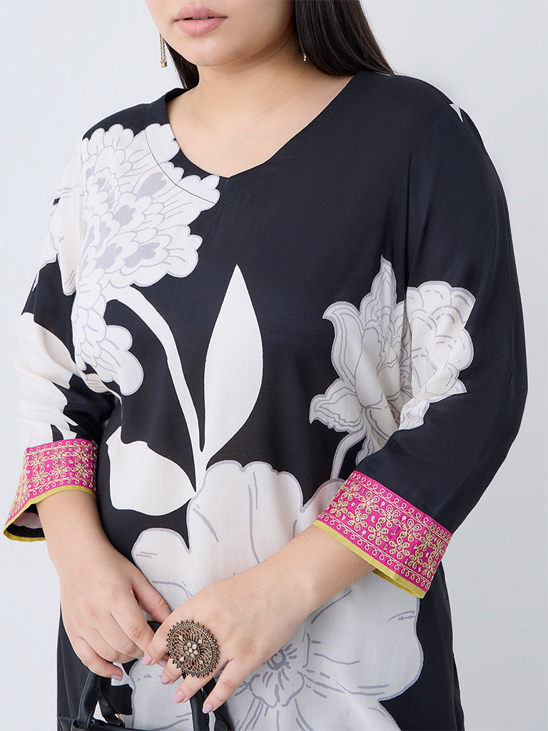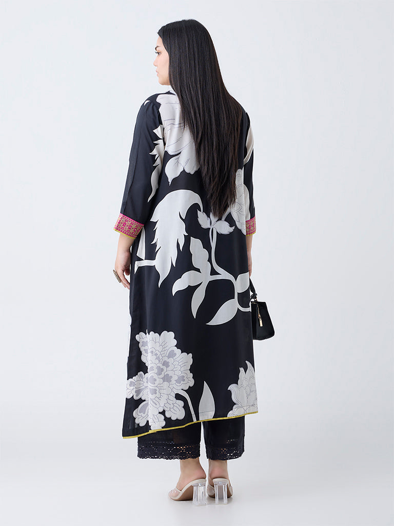 Diza Black Floral Design A-Line Kurta