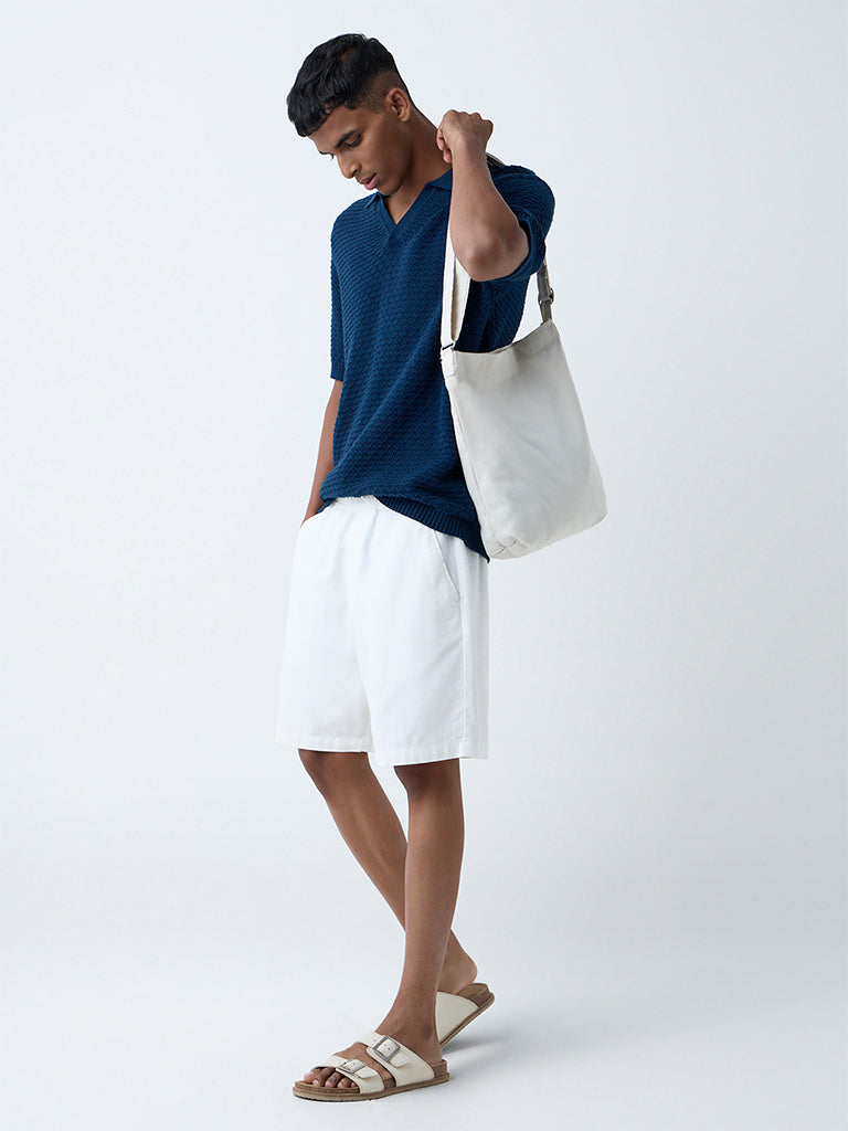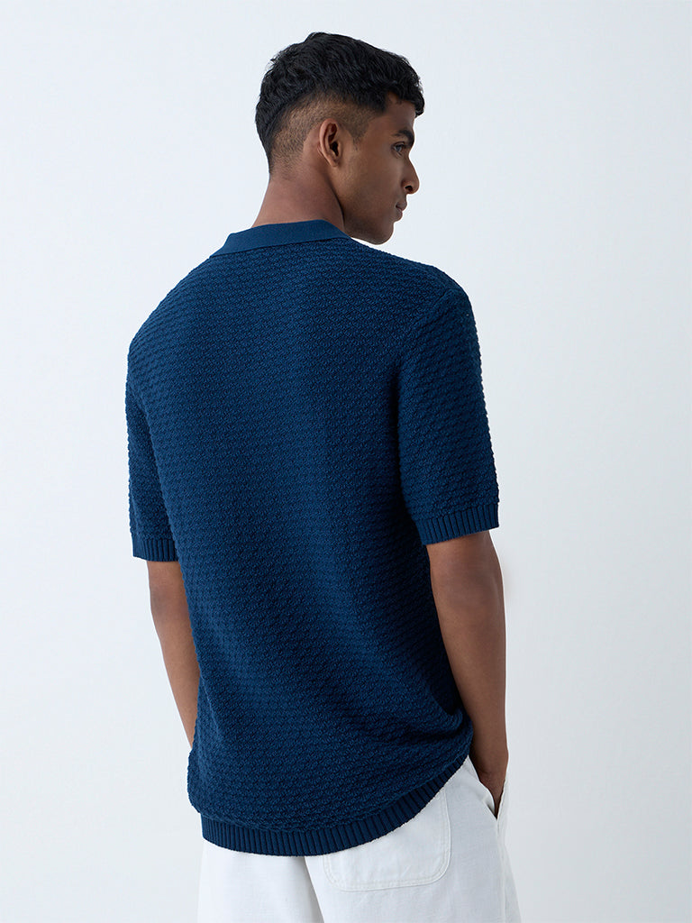 ETA Indigo Knit-Textured Relaxed-Fit Cotton Polo T-Shirt