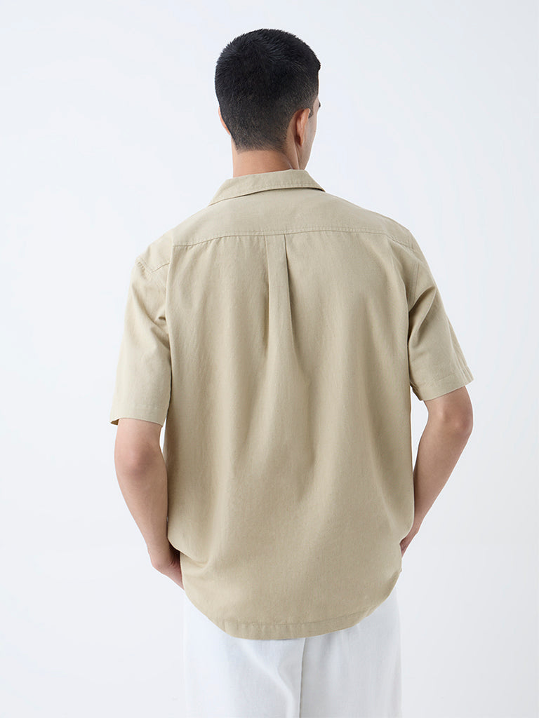 Crafted by Harshita, an emerging designer from NIFT Bengaluru, this Taupe shirt is a part of the exclusive Young New Gamechanger collection for Westside. Inspired by The Geoflow - inspired by nature's curves and crafted geometry, flowing into modern design. Made from a premium cotton-blend fabric, the shirt features a relaxed fit and a stylish camp collar. Its unique design is elevated by intricate abstract embroidery and a standout applique detail on the front, ensuring you make a statement with every wear. Finished with a button-up front and short sleeves, this shirt is the perfect balance of artistic expression and laid-back comfort.