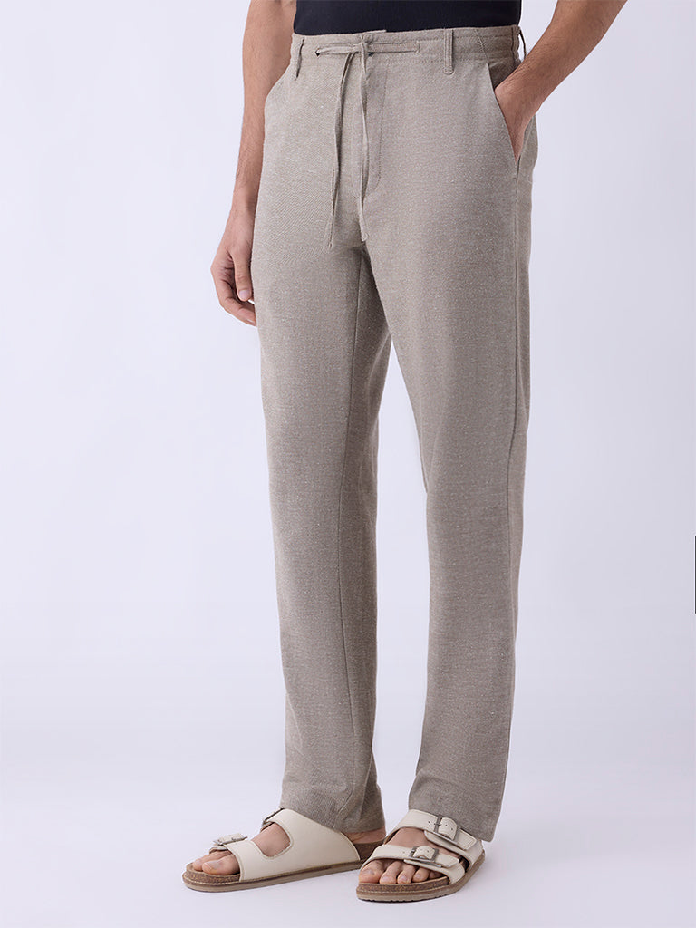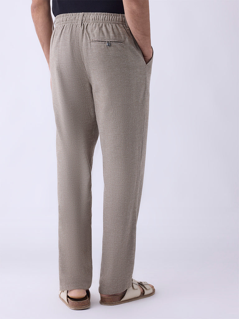 ETA Taupe Solid Relaxed-Fit Mid-Rise Pants