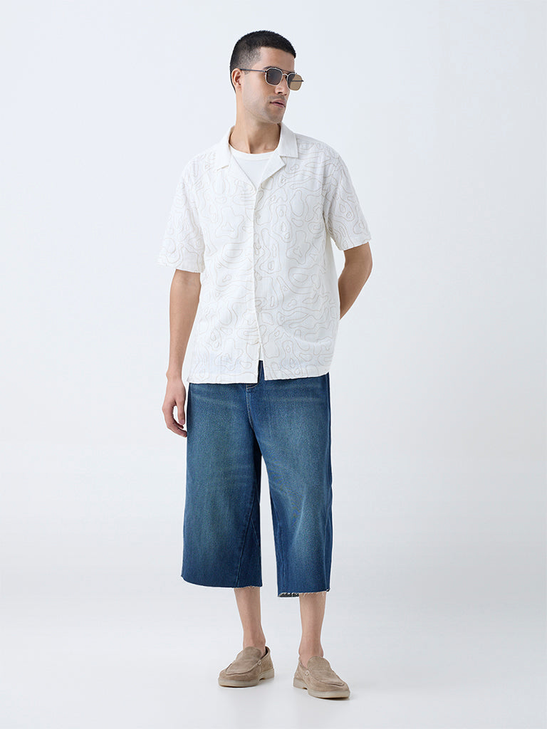 Inspired by The Geoflow - inspired by nature's curves and crafted geometry, flowing into modern design, this white shirt is part of the Young New Gamechanger initiative by Westside. It's an artistic creation by Harshita, a rising talent from NIFT Bengaluru. Crafted from pure cotton, this shirt stands out with its intricate all-over abstract embroidery. The relaxed fit, notched collar, and short sleeves offer a comfortable yet stylish silhouette, while the front button placket completes this versatile piece, making it a perfect addition to your contemporary wardrobe.
