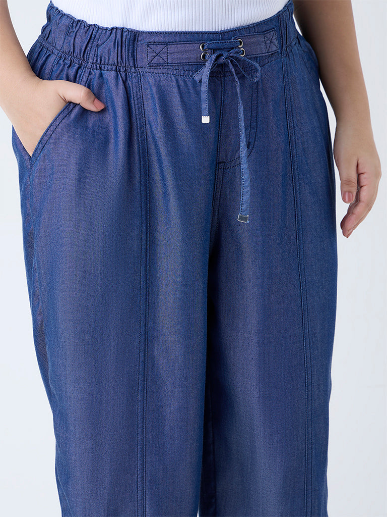 Upgrade your off-duty style with these dark blue chambray pants from Gia. Designed with an elasticated drawstring waistband, they offer a fit that’s as comfortable as it is flattering. Multiple pockets bring practical ease, while the soft, quality fabric keeps them breathable and versatile.