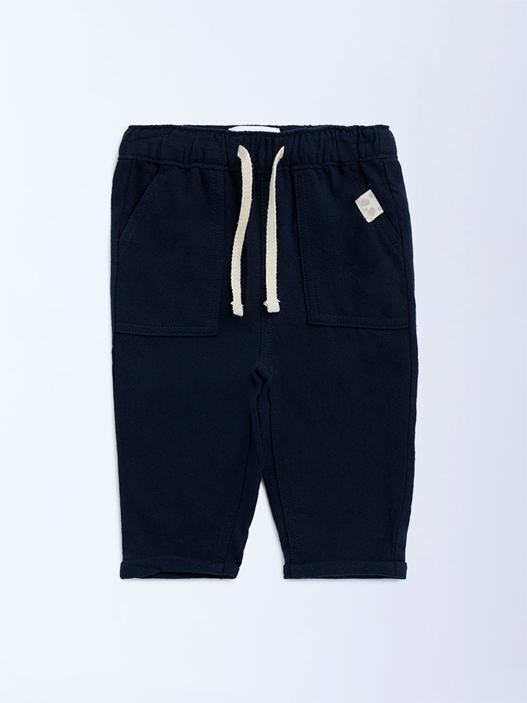HOP Baby Navy Mid-Rise Cotton-Blend Trousers