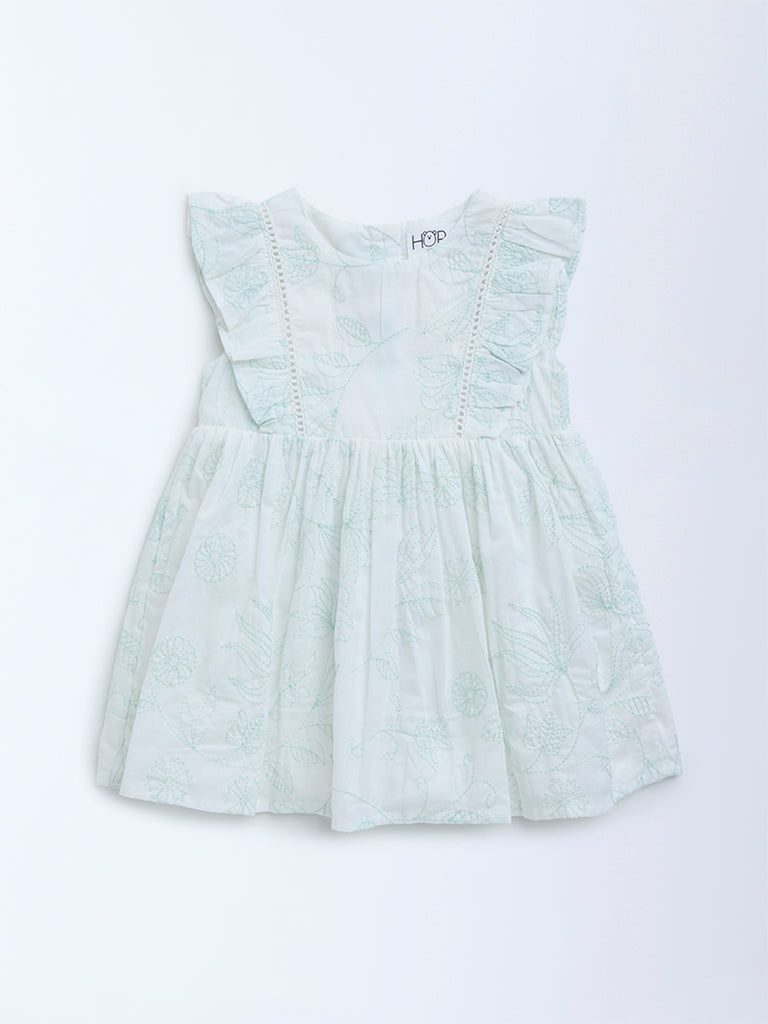 HOP Baby White Botanical Embroidered Cotton A-Line Dress