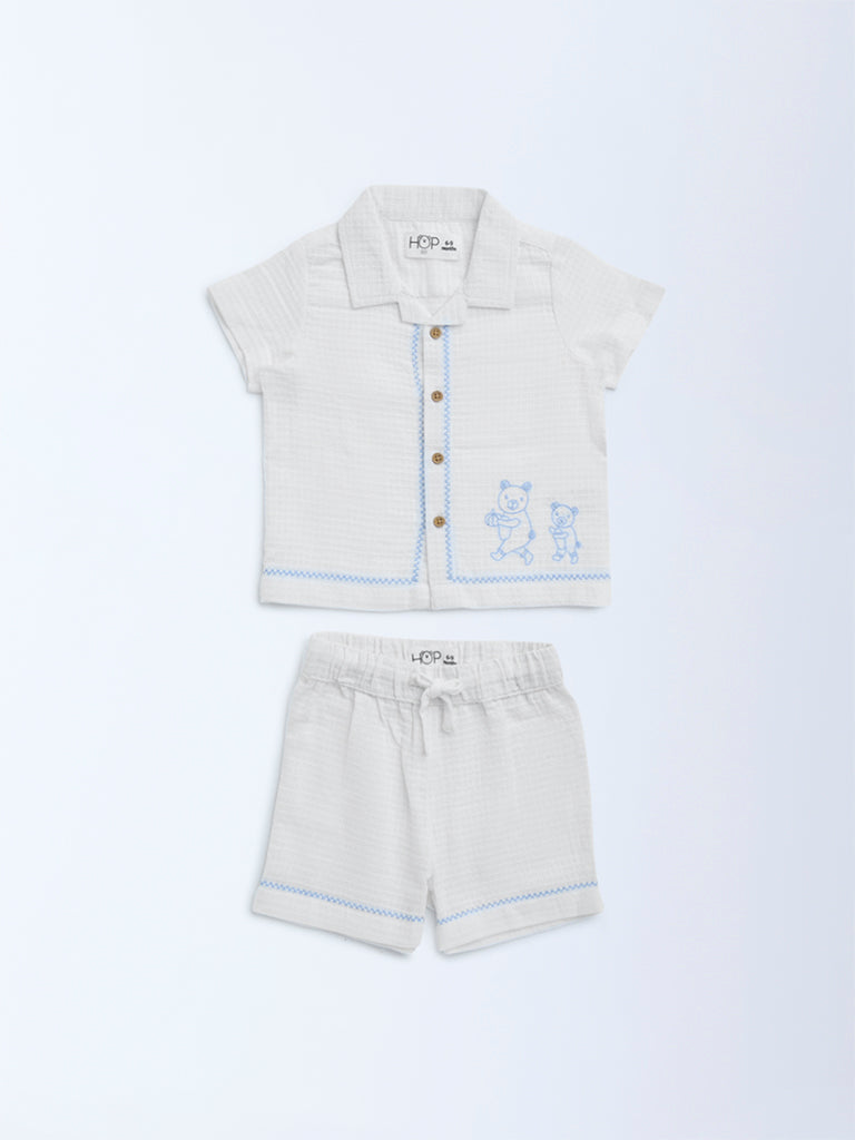 HOP Baby White Waffle-Textured Cotton Shirt with Shorts Set