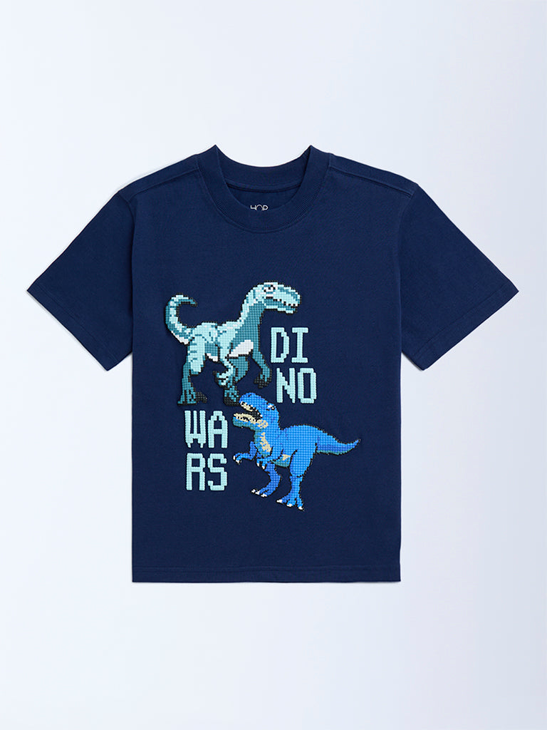 HOP Kids Navy Animal Pattern Cotton T-Shirt
