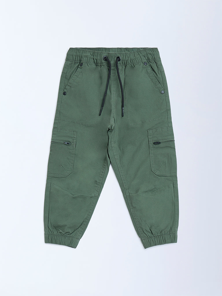 HOP Kids Olive Mid-Rise Cotton Joggers