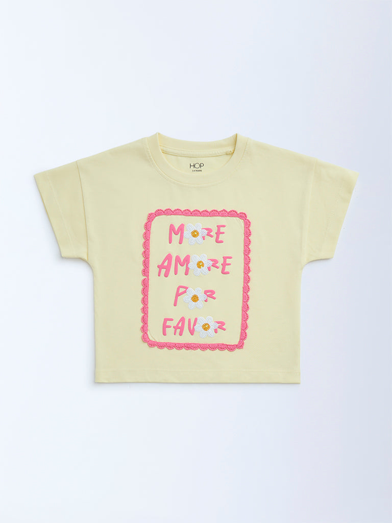 HOP Kids Yellow Text Detailed Cotton T-Shirt