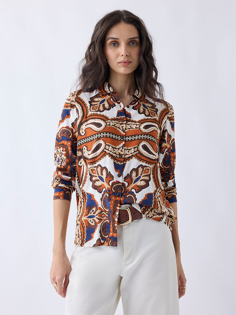 This multicolour shirt from LOV is framed with a straight-point collar, a button-up front and full sleeves. Showcasing bold, vibrant prints all over on a soft, breathable fabric, this piece is perfect for adding effortless style to your everyday wardrobe.
