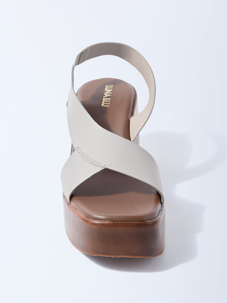 Bring a touch of summer style to your look with these ivory sandals from Luna Blu, featuring an elegant asymmetrical strap design. Set on a rich wooden platform for enhanced grip and finished with a soft insole for lasting comfort, they balance warm-weather ease with effortless sophistication.