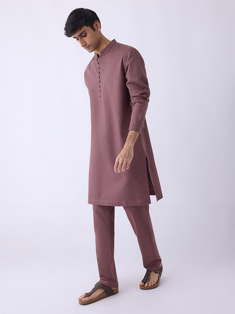 Mens Ethnicwear Mauve Solid Relaxed-Fit Mid-Rise Pants