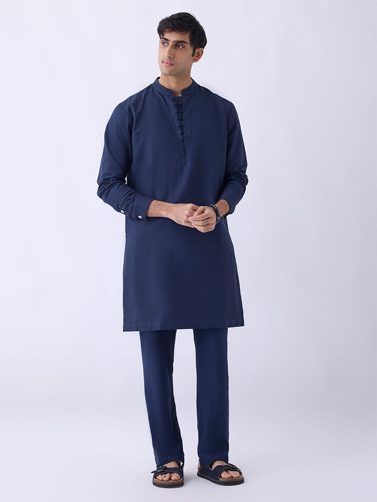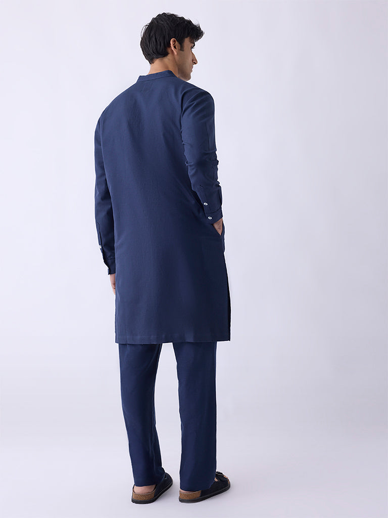 Mens Ethnicwear Navy Relaxed-Fit Cotton-Blend Kurta