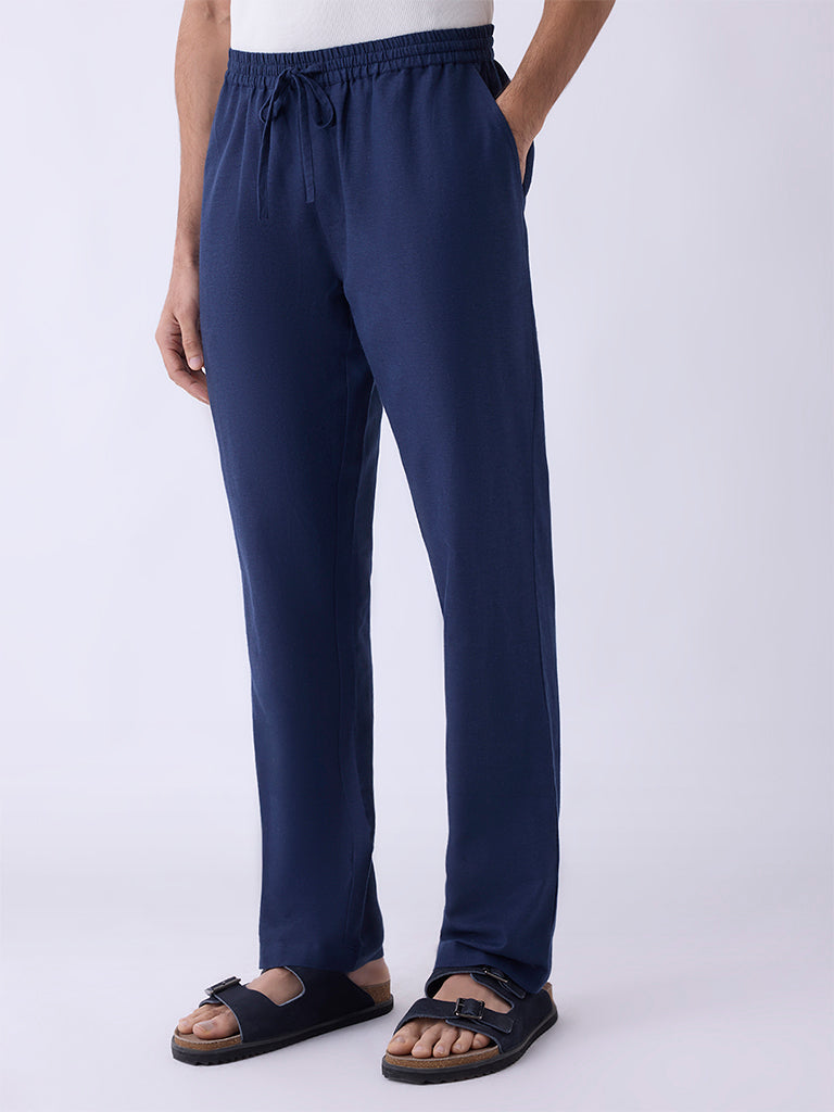 Mens Ethnicwear Navy Solid Relaxed-Fit Mid-Rise Pants