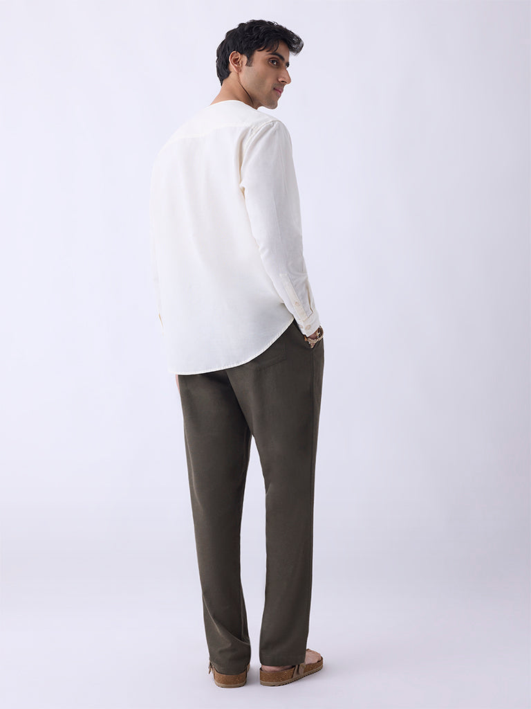 Mens Ethnicwear Off-White Cotton-Blend Short Kurta