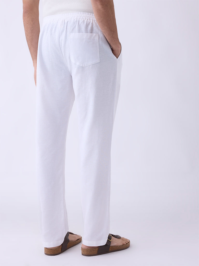 Mens Ethnicwear White Solid Relaxed-Fit Mid-Rise Pants