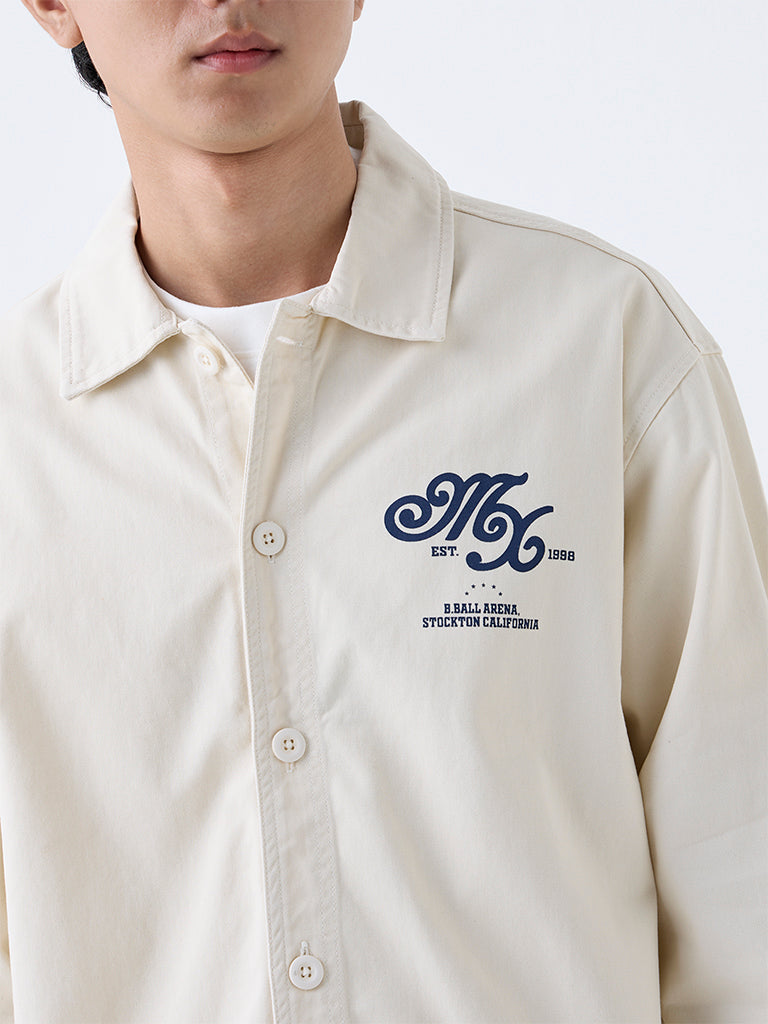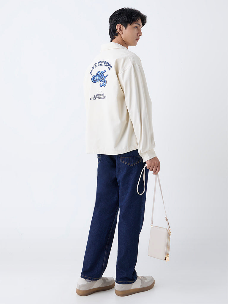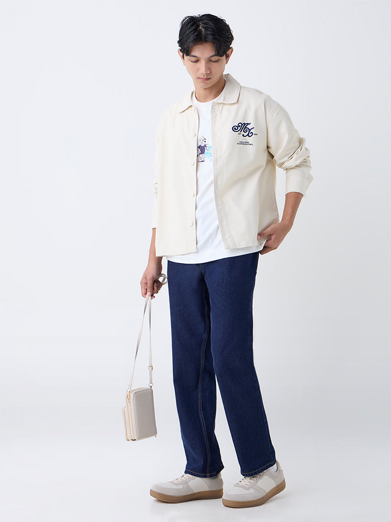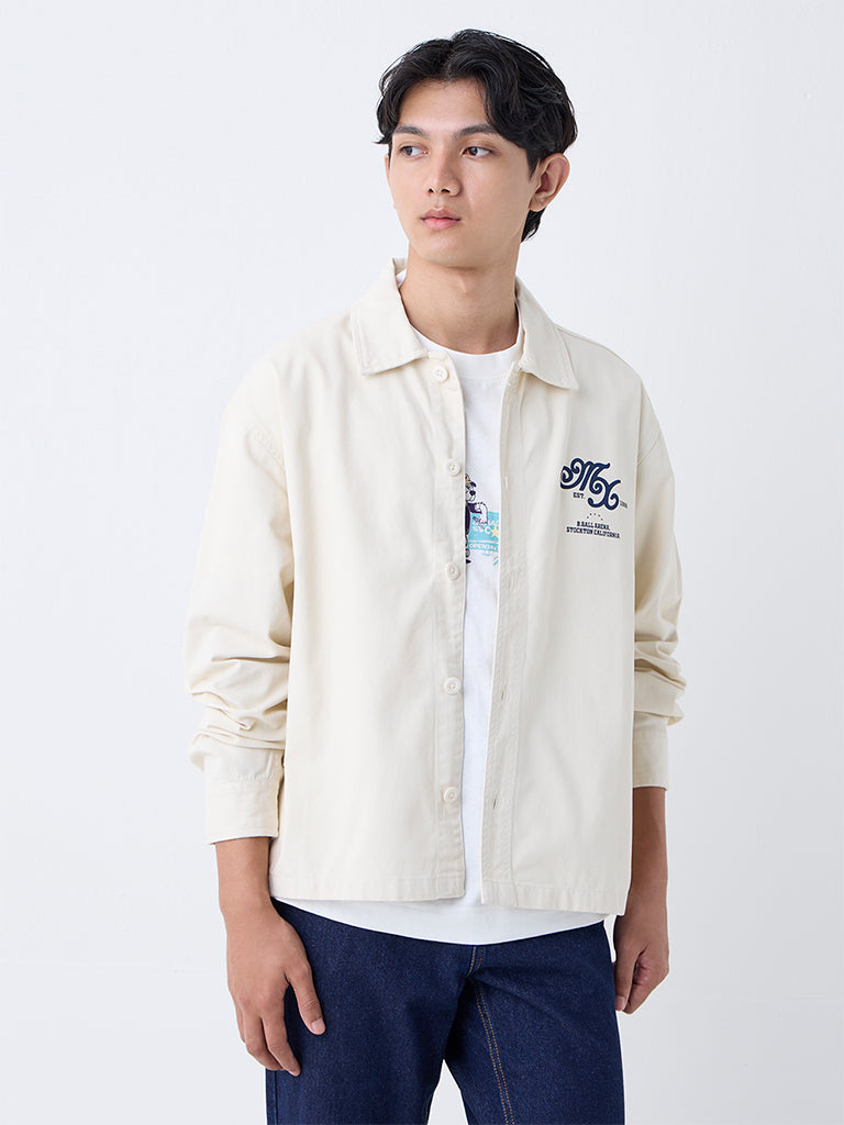 Nuon Beige Text Detailed Relaxed-Fit Cotton Shirt
