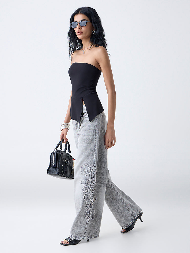 Turn casual days into a style statement with this black tube top from Nuon. Spun from an ultra-lightweight fabric, it features an off-shoulder neck that adds a modern edge.