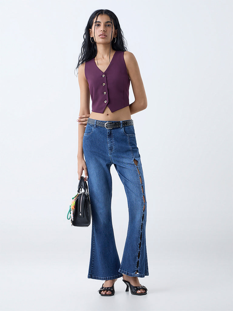 Nuon Blue Cut-Out Detailed Mid-Rise Bootcut Jeans