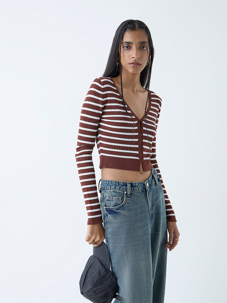 This brown top from Nuon is a cool-weather staple. Cut from a ribbed-textured fabric, it features a flattering V-neckline, button detailing, and full-length sleeves for a touch of structure.