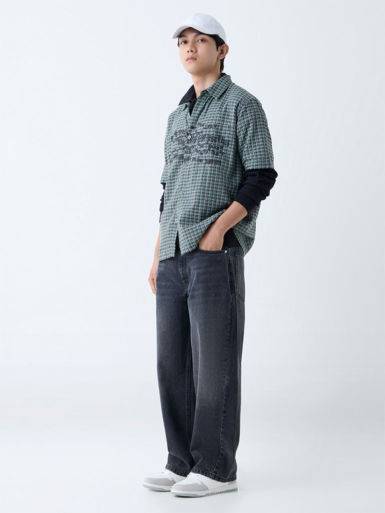 Nuon Green Checks Detailed Relaxed-Fit Cotton Shirt