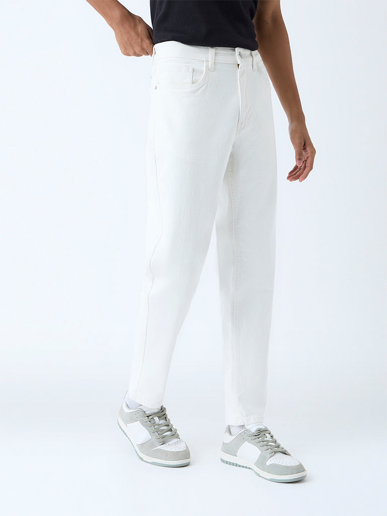 Turn sidewalks into runways with these white slim-fit jeans from Nuon. Constructed from pure cotton for breathable comfort, they feature a classic five-pocket design and secure button-and-zip fastening for a personalised fit.