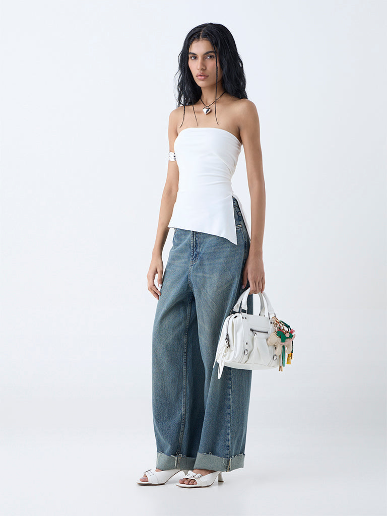Boost your summer wardrobe with this white tube top from Nuon. Crafted from stretch-infused fabric, it sits comfortably against the skin while allowing natural movement. The off-shoulder neckline features a smooth elastic band for a secure fit, and a side slit adds a flattering twist.