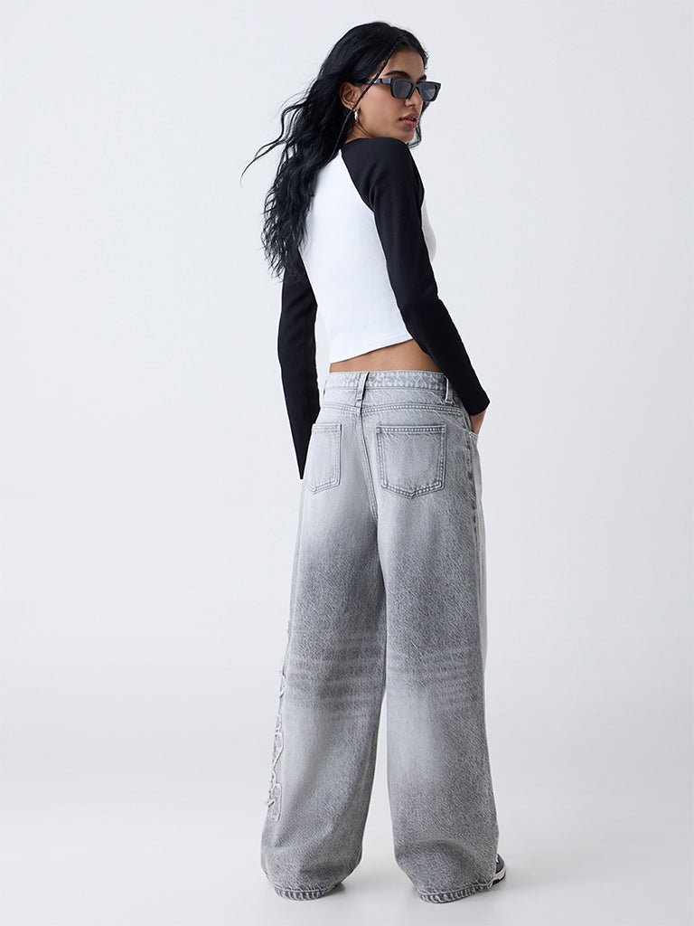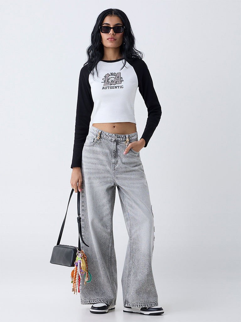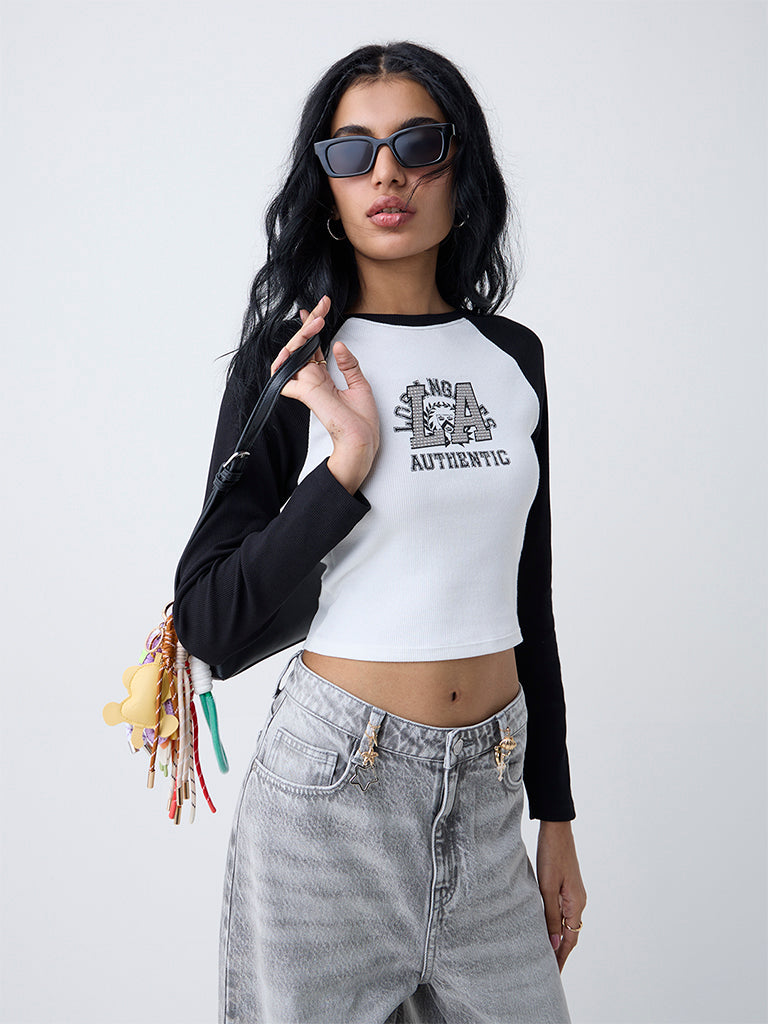 Woven from a ribbed-textured fabric, this white t-shirt from Nuon makes a statement with bold text graphics across the front. Designed with a round neck and relaxed raglan sleeves, it balances effortless comfort with contemporary style.