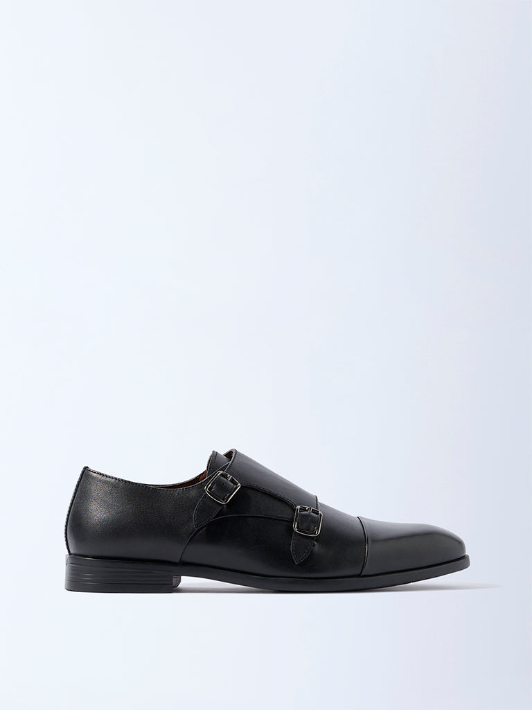 These black monk shoes from Soleplay feature an elegant double-buckle detail that lends a refined edge to their classic design. Crafted with a smooth, polished finish and a structured silhouette, they pair effortlessly with tailored ensembles. Designed for day-long ease, they come with a soft footbed and a durable outsole, making them a sleek and versatile addition to your formal wardrobe.