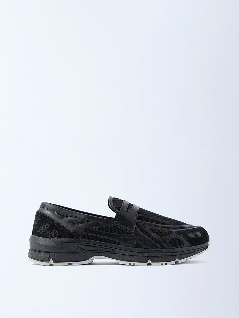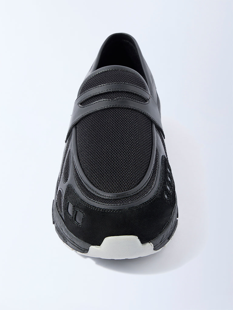 Slip into urban sophistication with these black snoafers from Soleplay. Crafted with breathable mesh panels on the upper, they offer a modern twist on a classic slip-on silhouette. A cushioned insole provides durability and comfort, while the textured outsole offers enhanced traction.