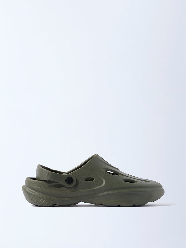 Soleplay launches these olive clogs, defined by a contemporary silhouette and a perforated upper that promotes airflow and keeps your feet cool. Designed for effortless wear, they feature a padded footbed that delivers all-day comfort. Completed with a textured outsole, this versatile pair ensures steady grip while lending a modern touch to casual dressing.