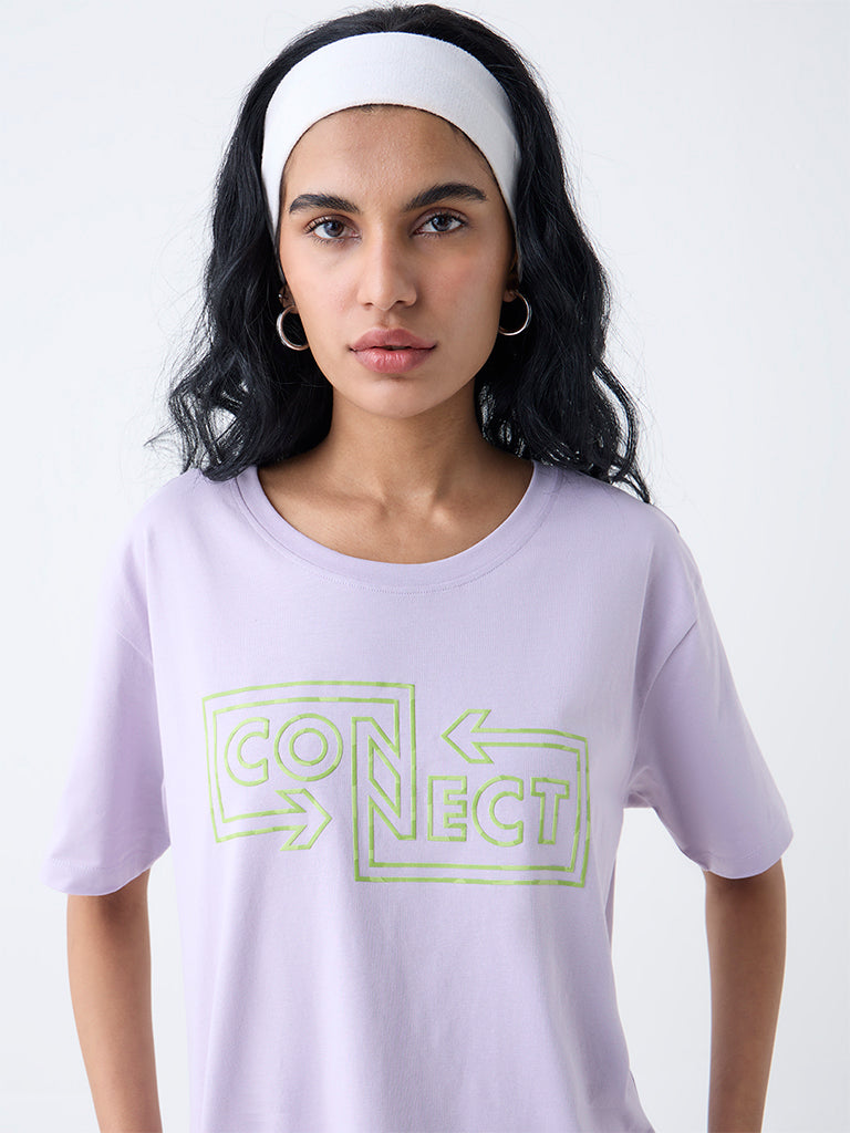 Studiofit Lilac Text Design T-Shirt