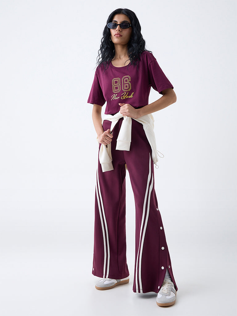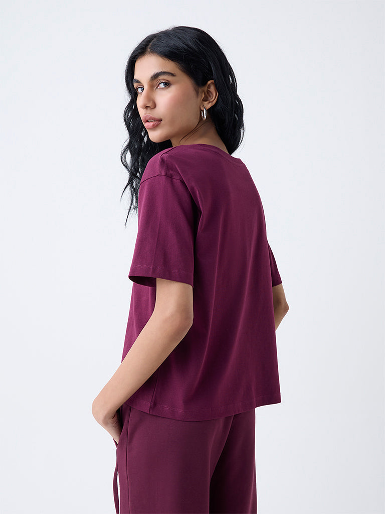 Studiofit Plum Printed Cotton T-Shirt