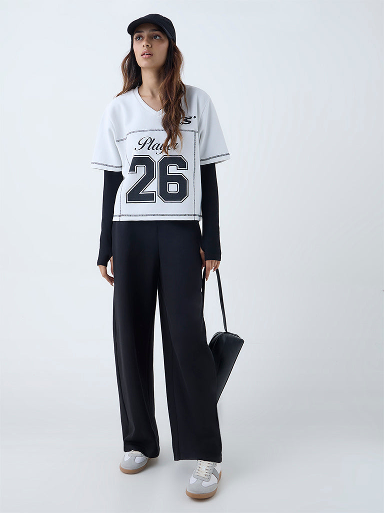 Designed for the active woman, this white tee from Studiofit pairs performance-ready functionality with contemporary style. Made from a waffle-textured fabric, it boasts striking numerical prints at the front for a sporty edge. The V-neck and short sleeves ensure ease of wear, making it a versatile choice for intense workouts or relaxed athleisure looks.