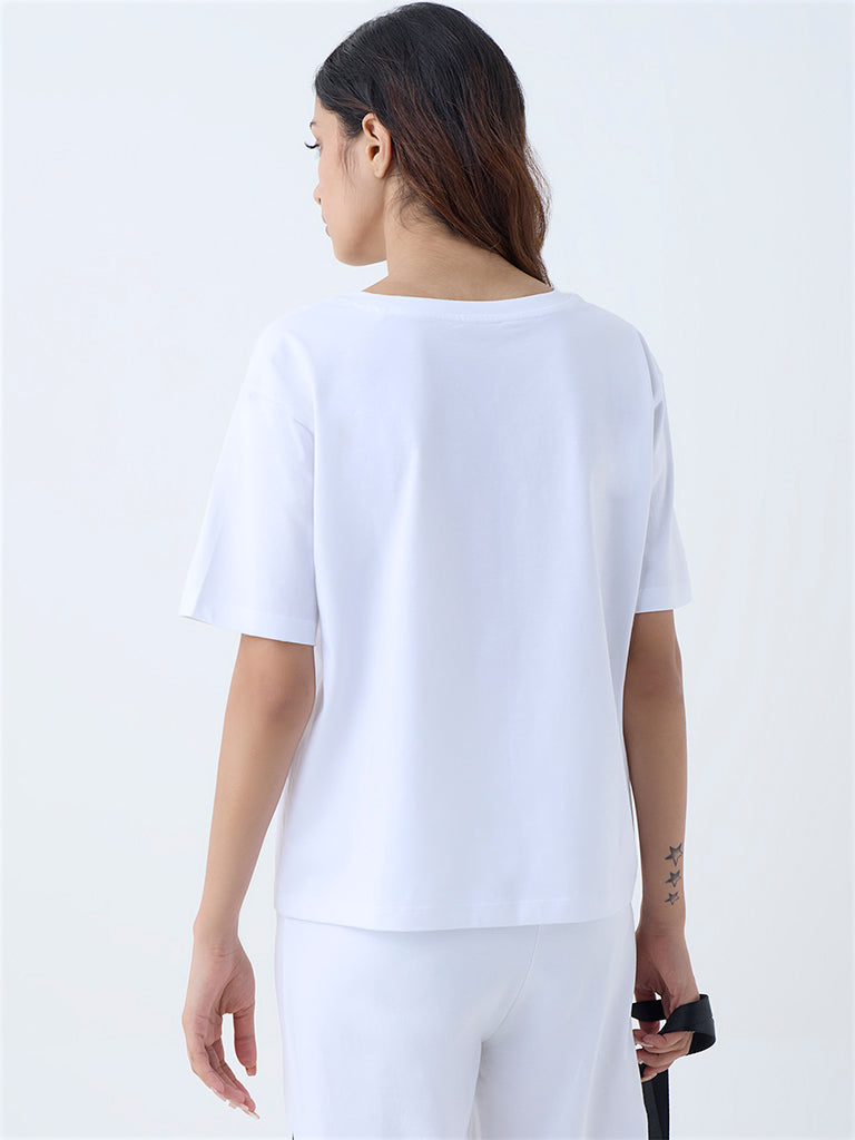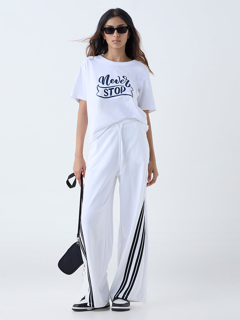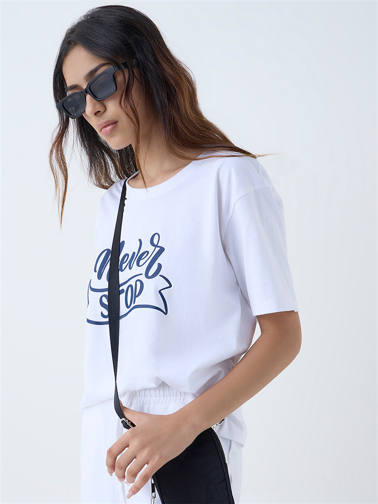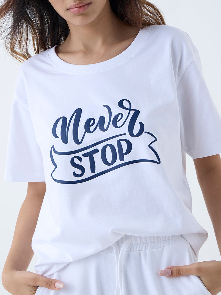 Studiofit White Text Printed Cotton T-Shirt