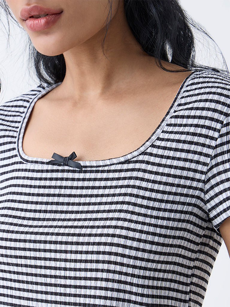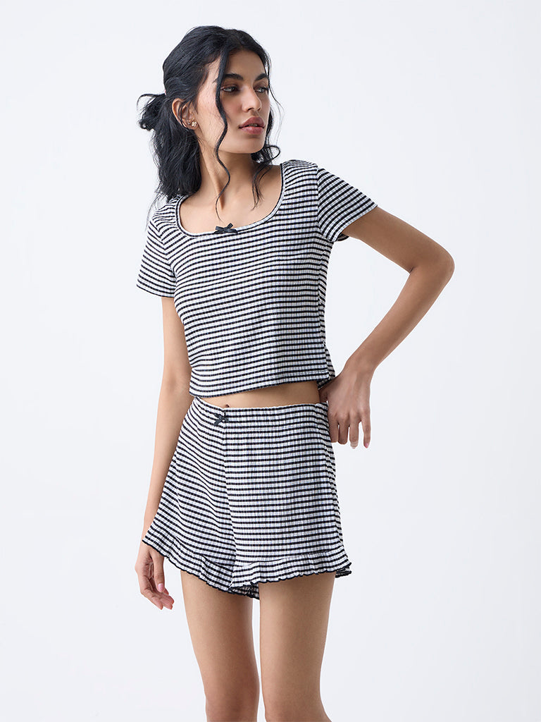 Your lounging staple gets a stylish upgrade with this black top from Superstar. Decked with gingham checks and woven from a breathable fabric, it keeps you comfortable during relaxed at-home days. The square neck frames the collarbone elegantly, while short sleeves ensure unrestricted movement.