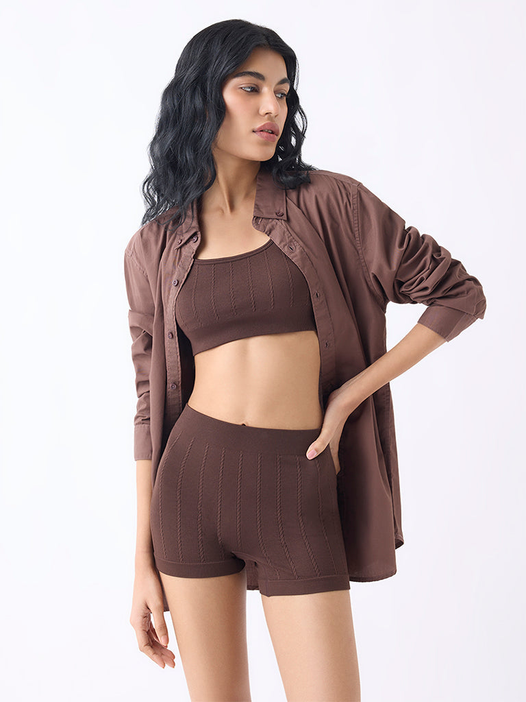 Superstar Dark Brown Textured Seam-Free Boy Shorts Briefs