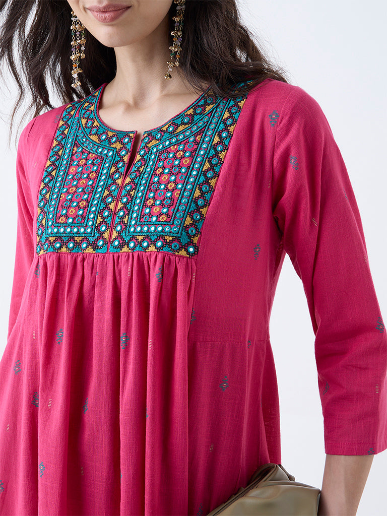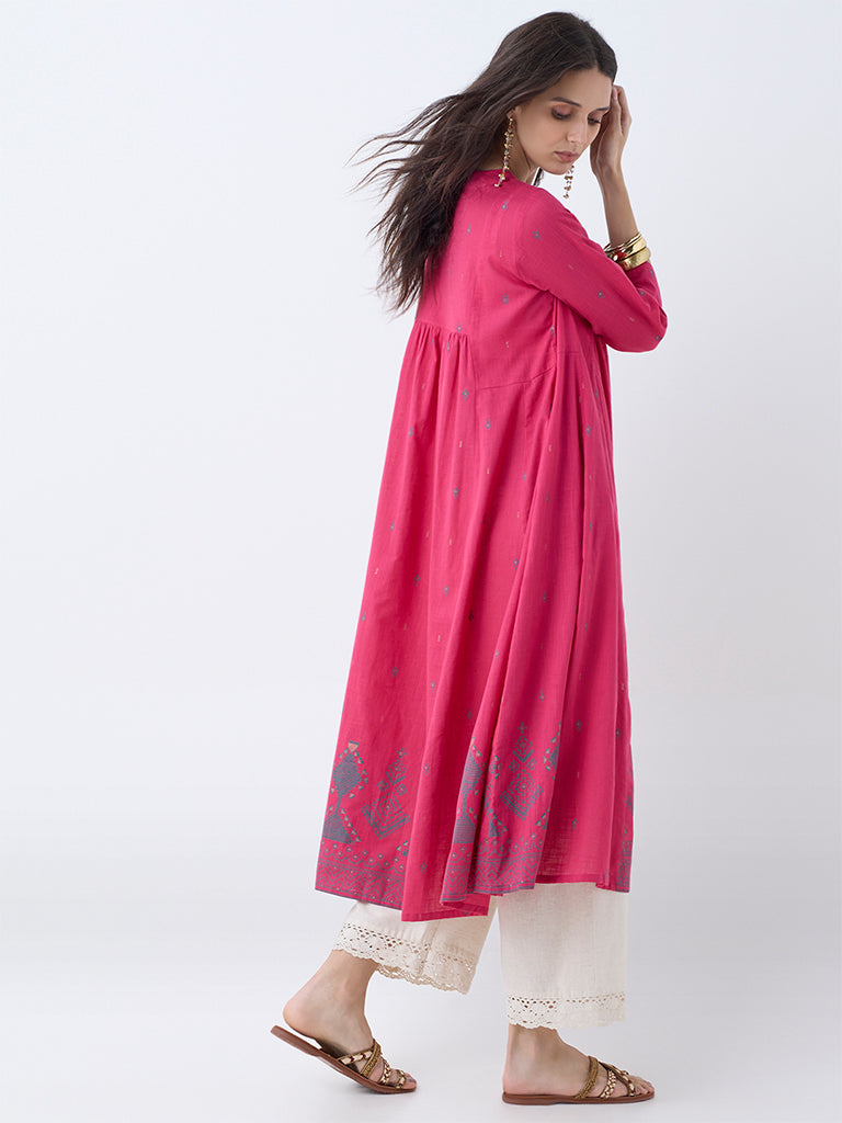 Utsa Fuchsia Embroidered Anarkali Cotton Kurta