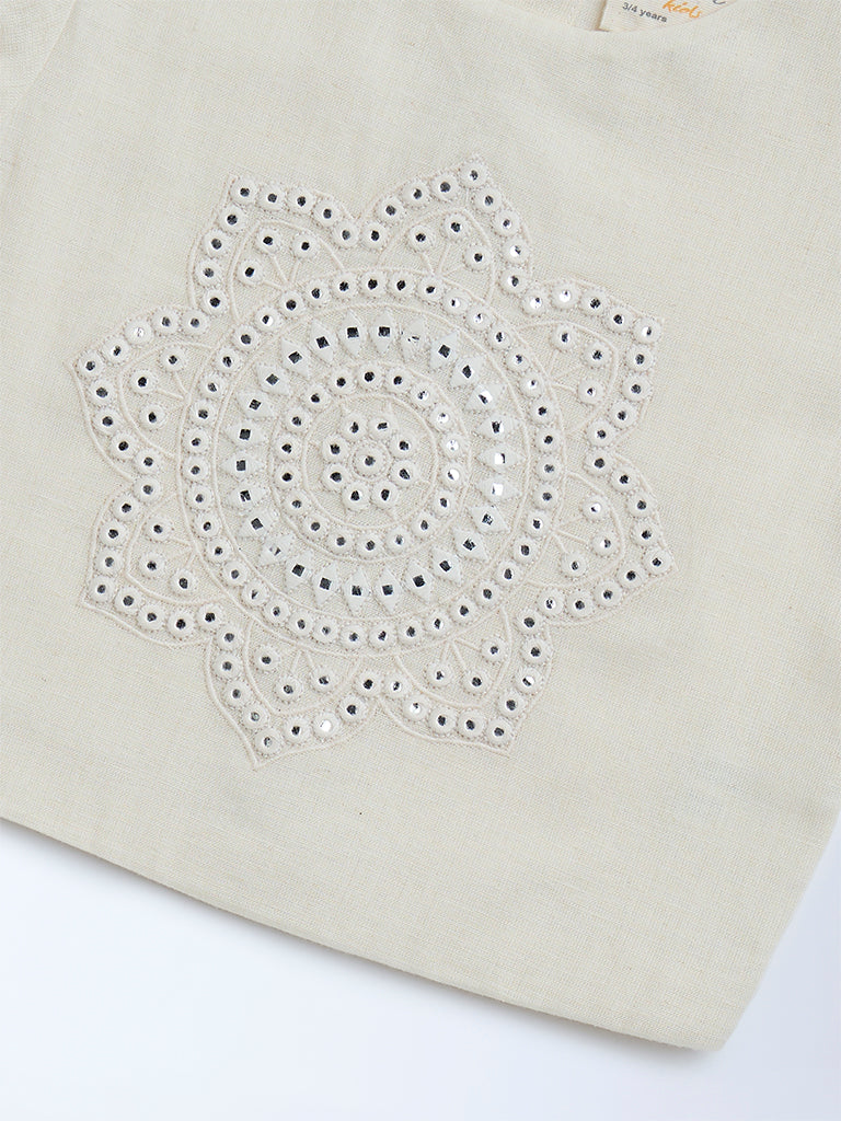 Utsa Kids Off-White Mirror Detailed Cotton Ethnic Top - (2-8yrs)